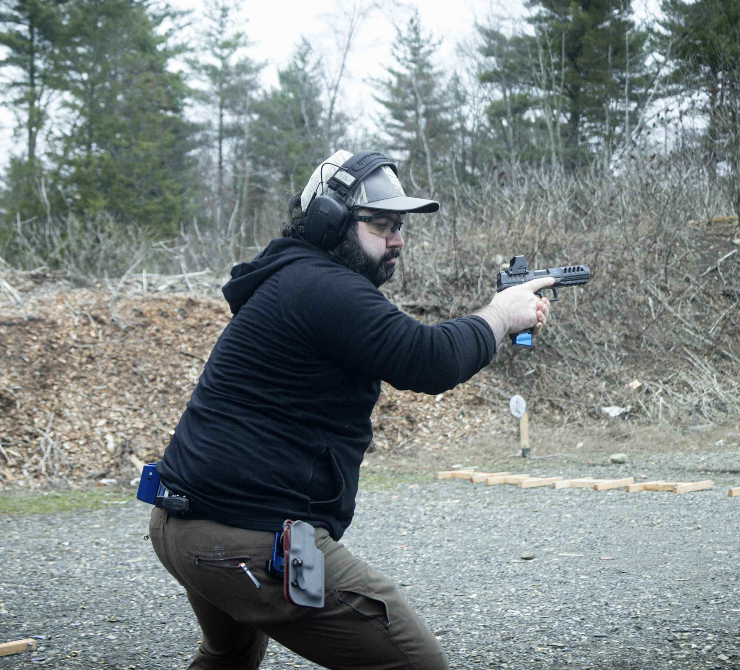 Blake trains deliberately several times a week at the Hardwick Rod & Gun Club in Massachusetts with his training partner and mentor, Eric Olson (owner of 508 Holsters). Blake competes regularly in the Practical Competition Shooting League (PCSL), United States Practical Shooting Association (USPSA), and the Galactic Pistol Association (GPA).